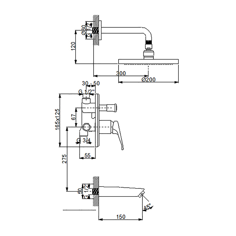 Naziv proizvoda:Bat. za kadu ugradna sa izlivom i zidnim tusem NEWARC - SMART [142117]