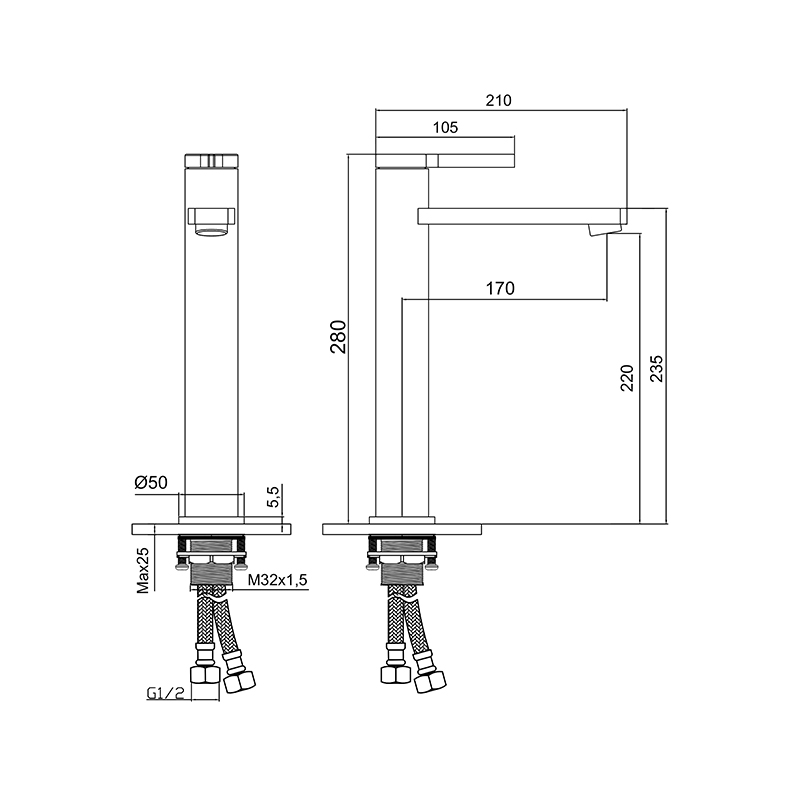 Moderna slavina za umivaonik, sa hrom završnom obradom. Kreirana za moderna kupatila, i lako uklopiva sa svim stilovima i elementima u enterijeru.