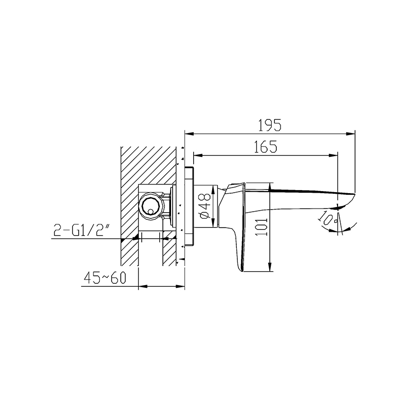 Moderna slavina za umivaonik, sa hrom završnom obradom. Kreirana za ugradnju u zid, kako bi unela dodatnu dozu elegancije u kupatilo.