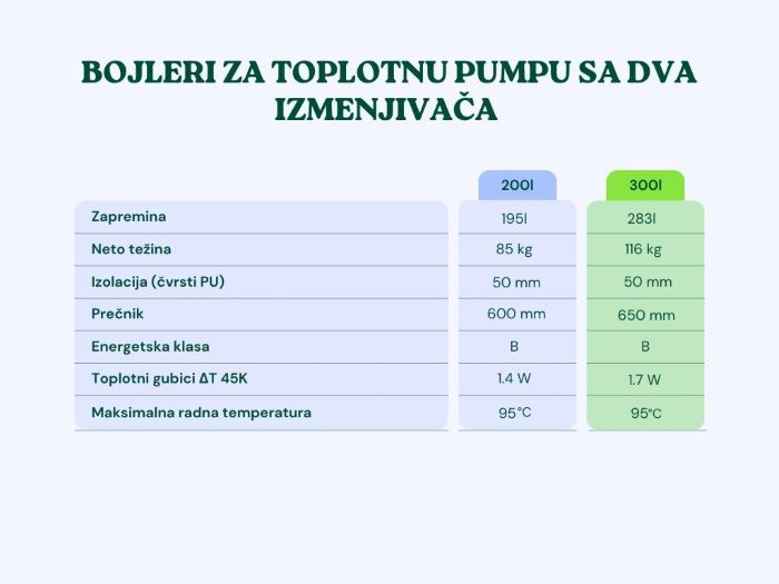 Veličina i kapacitet: Bojleri za toplotnu pumpu dolaze u različitim veličinama, pa treba odabrati odgovarajući kapacitet koji će zadovoljiti potrebe za toplom vodom u domaćinstvu.