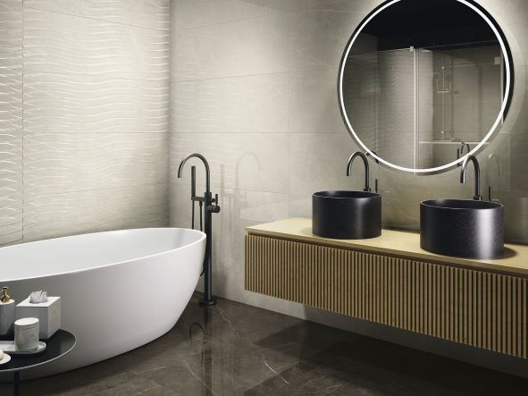 Dimenzije 40x120 cm su veće od standardnih dimenzija zidnih pločica, što doprinosi vizuelnom proširenju prostora i smanjenju broja spojeva na zidu. To olakšava čišćenje i održavanje higijene.