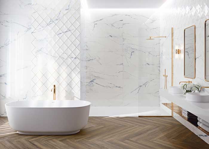 Bele marble pločice su izuzetno elegantan izbor koji donosi osećaj luksuza i svetlosti u prostor. Beli mermer je poznat po svojoj klasičnoj lepoti i neutralnoj paleti, što ga čini svestranim izborom za različite enterijere.