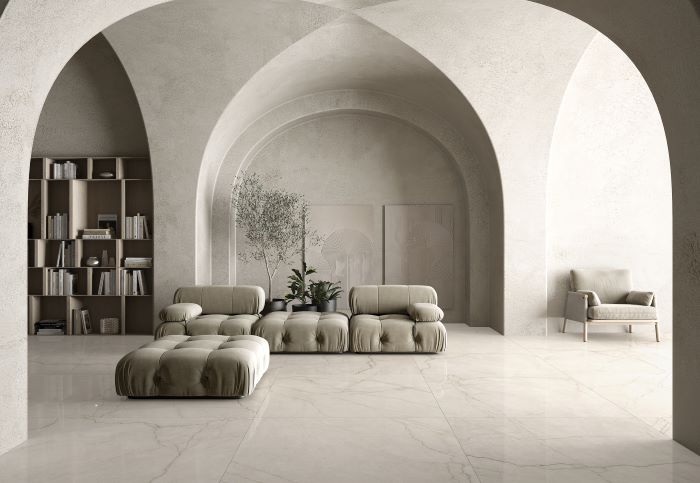 Kombinovanje pločica u nijansi AVORIO s drugim svetlim tonovima, drvenim detaljima ili metalnim dodacima može naglasiti osećaj svežine i prostranosti prostorije.