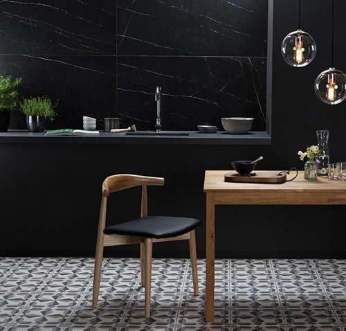 Crni mermer je često asocijacija na eleganciju, a pločice koje ga imitiraju mogu pružiti taj rafinirani izgled prostoru uz praktičnost i jednostavnost održavanja keramičkih ili porcelanskih pločica. Ovakve pločice se često koriste u različitim prostorima poput kupatila, kuhinja, hodnika ili komercijalnih objekata kako bi uneli luksuzan osećaj i moderni dizajn.