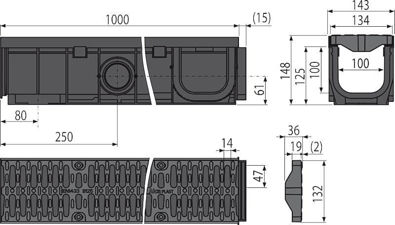 Klasa opterećenja B12512500 kgProfil protoka slivnika95,3 cm²Ukupna visina instalacije148 mmPrečnik odvodne cevi110 mm
