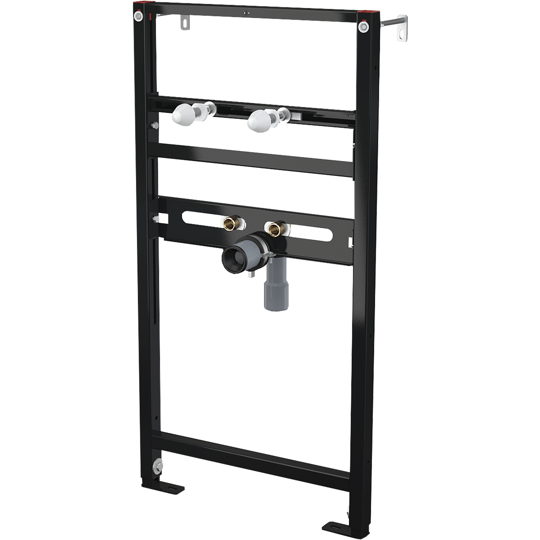Peskirani čelični okvir, samostojeći za nazidne instalacije ili za instalacije na pregradnim zidovima, potpuno unapred sklopljeno, spojnice armature podesive po visini za pojedinačnu ili instalaciju sa šipkama, brzo podešavanje, bez pribora za nazidnu instalaciju.